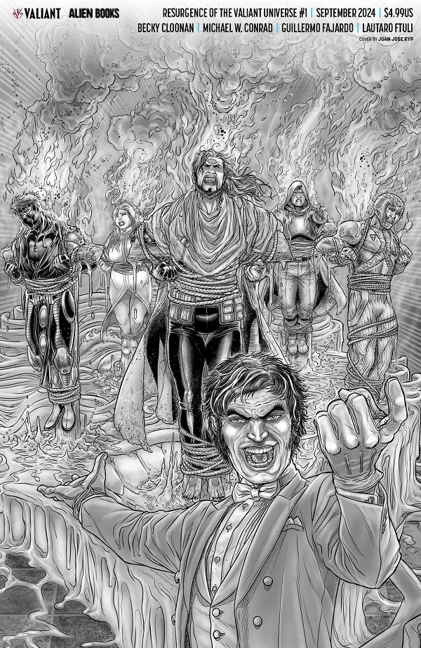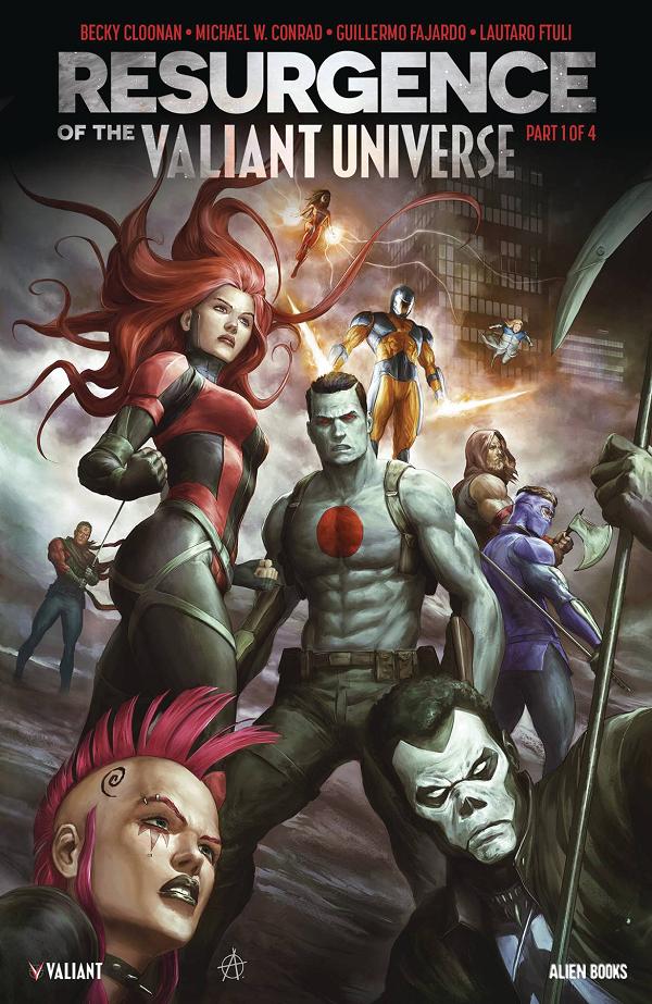 Welcome to the Resurgence of the Valiant Universe! This is it. The series that will change our heroes forever. The event of the summer is here! Prepare to see the unexpected: the rise of Dr. Silk, once an infamous villain, now a beacon of hope. He brings forth radical ideas of a utopian world where death is no longer a part of the human experience. Many people will see him as a leader of peace and change, while others question his actions as everything has a cost, and Earth starts to break into different realities. With the help of Master Darque, Silk makes his silent magical/technological attack on the Faraway, causing many sinkholes to appear and panicking the world. Conflicts break out. War emerges... Dr. Silk and his weavers craft webs of eternal life in a world shattered. Can our heroes navigate this new world order? The battle lines are drawn, and the only question is whose side you will be on when the dust settles - featuring X-O Manowar, Bloodshot, Eternal Warrior, Ninjak, Ivar, Rai, Livewire, Faith, and more! Crafted by the stellar team of Becky Cloonan, Michael W. Conrad, (X-O Manowar Unconquered, Immortal Wonder Woman), and new rising star artist Guillermo Fajardo, the Valiant Universe will never be the same!